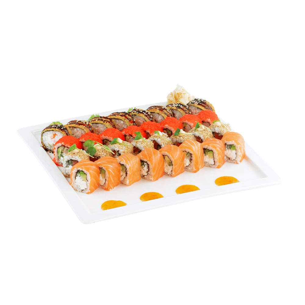 Cет из 4 роллов - «Филадельфия», «Somonul deștept», «Калифорния с креветкой», «Темпура с креветкой»